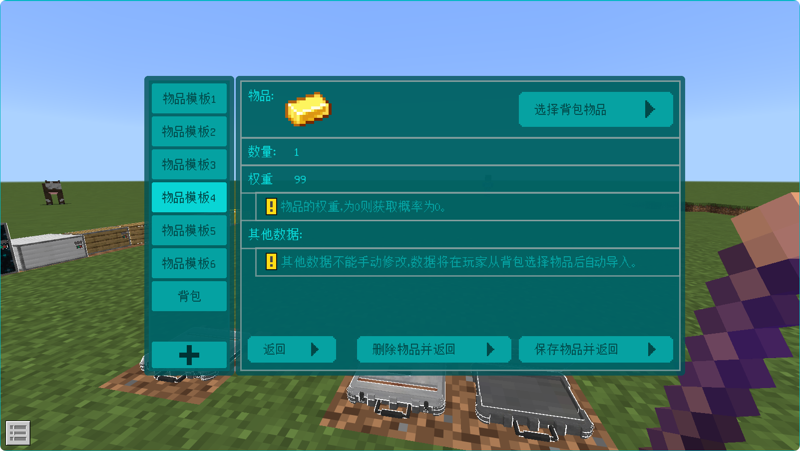 自定义保险箱数据棍 点击支持的保险箱方块,选择物品刷新池 选项,跳转至物品池模板选择